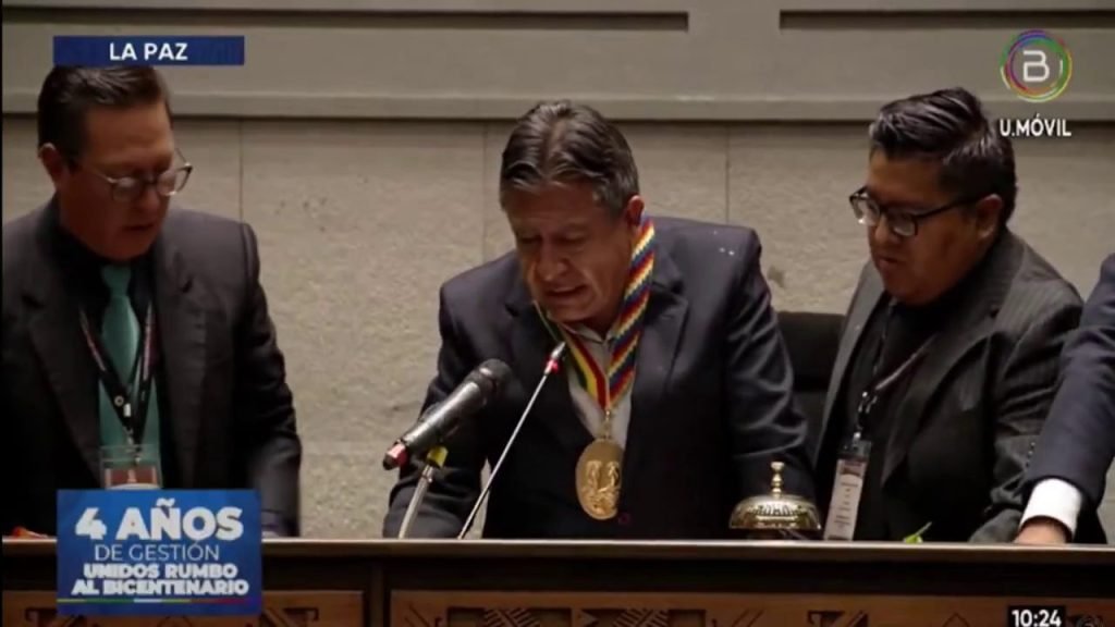 David Choquehuanca suspendió la sesión de la Asamblea Legislativa Plurinacional, en la que el presidente, Luis Arce, debía pronunciar su informe de gestión, luego de que parlamentarios evistas lanzaran objetos sobre la testera y sobre el presidente nato de la ALP.