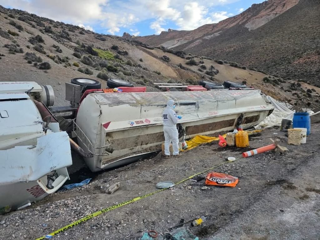 Camión cisterna que transportaba combustible hacia Bolivia, vuelca en el km 141 de la Ruta 11Ch, derramando más de 15 mil litros de diésel, afectando bofedales del Parque Nacional Lauca y un curso de agua cercano en Putre, en Arica Chile.