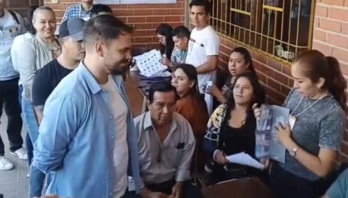 El candidato presidencial por el Movimiento Al Socialismo – Instrumento Político por la Soberanía de los Pueblos (MAS-IPSP), Eduardo Del Castillo, emitió su voto este domingo en la Unidad Educativa Cáritas, en la ciudad de Santa Cruz de la Sierra. Su llegada al recinto estuvo marcada por un ambiente tenso, con abucheos e insultos por parte de algunos ciudadanos presentes.