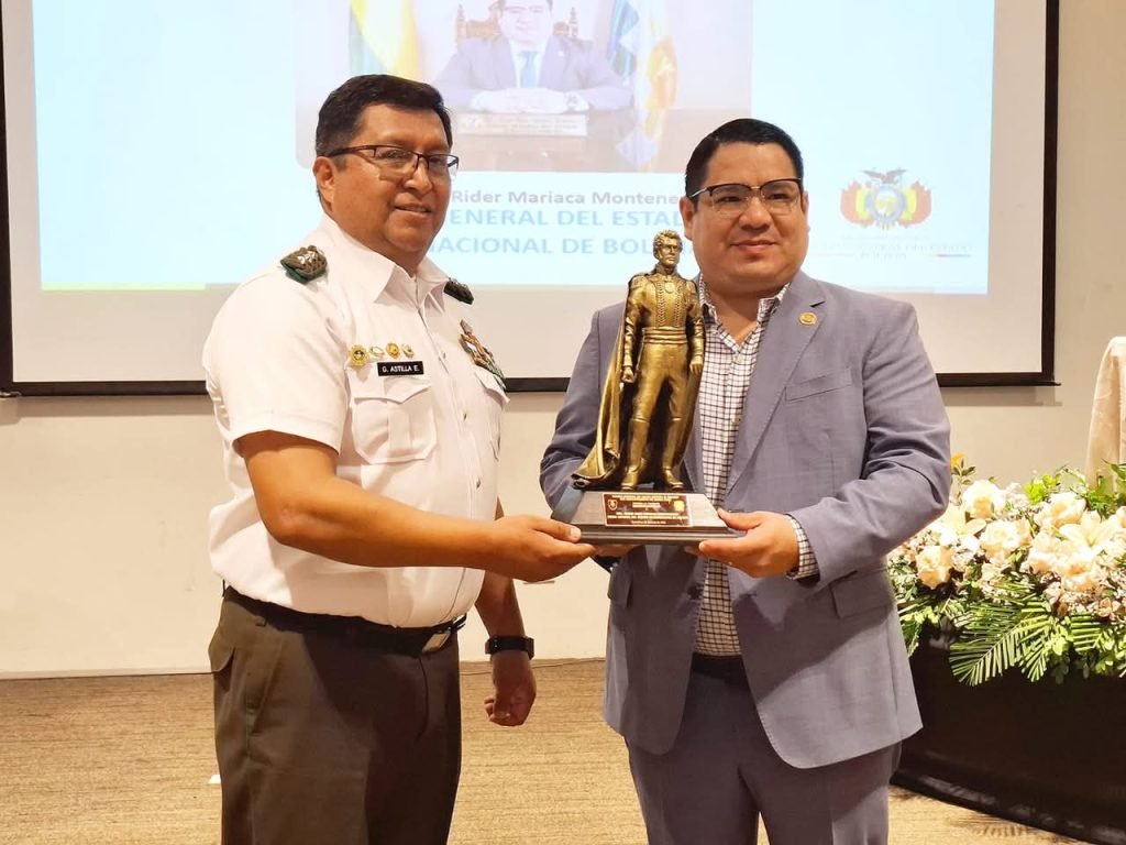 El Fiscal General del Estado, Roger Mariaca Montenegro, recibió hoy un reconocimiento por parte de la Fuerza Especial de Lucha Contra el Crimen (FELCC) de Santa Cruz, por su destacado trabajo en beneficio de la población. El reconocimiento fue entregado durante los actos centrales por los XIX aniversarios de la institución policial, que se realizó en la ciudad de Santa Cruz de la Sierra.
