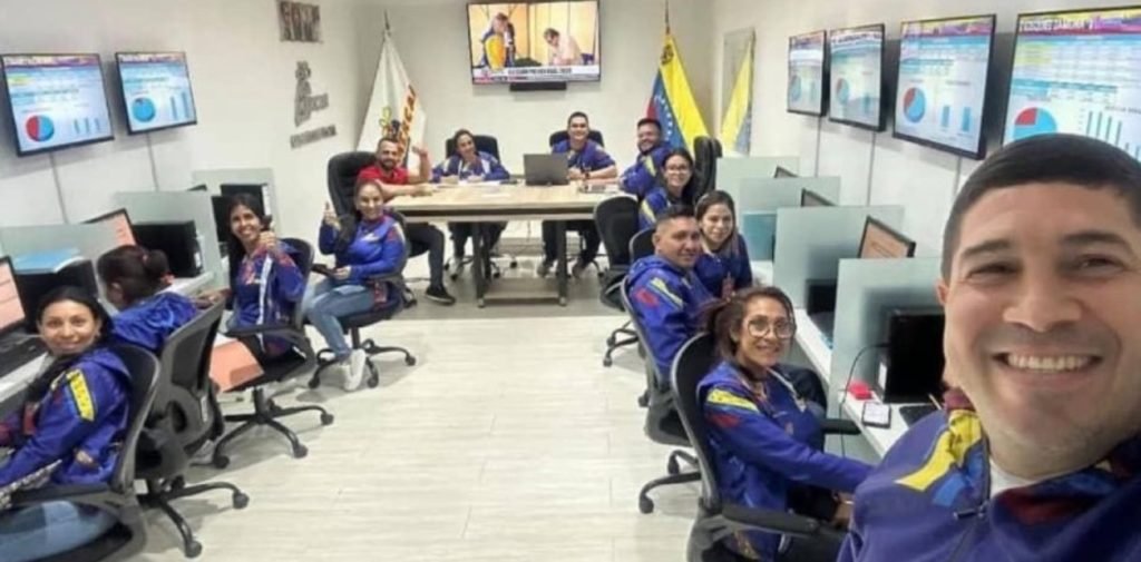 La imagen fue publicada el domingo a las 7.52 pm por Rubén Flores, Jefe Estadal de Mercal, en Aragua, y muestra una oficina de conteo de votos llena de pantallas con gráficos de barras y tortas en las que el color azul le gana al rojo, característico del chavismo. ¿Es un centro oficial de cómputos? No hay información al respecto, podría serlo ya que hay dos banderas oficiales, pero de todas formas los opositores ven en esa instantánea una prueba contundente del triunfo de Edmundo González Urrutia que Maduro no reconoce.