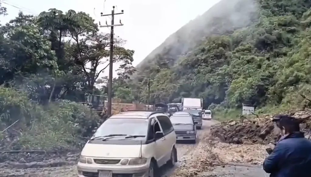 De acuerdo a la información enviada por las mismas personas del lugar, una gran cantidad de tierra, piedras, árboles y ramas cayeron sobre la capa asfáltica, cortando el paso momentáneamente por este sector.