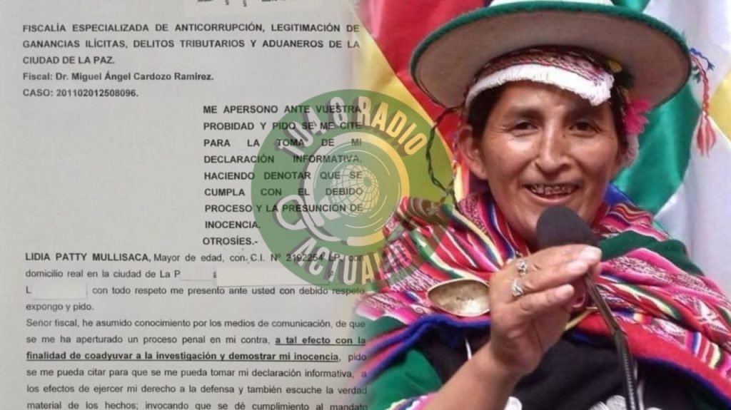 El abogado Richard Cerda informó este jueves que la exdiputada Lidia Patty ya se encuentra en territorio boliviano y que, a través de sus familiares, presentó un memorial de apersonamiento ante el Ministerio Público, en el marco de la investigación del caso denominado Fondo Indígena. Según el jurista, hasta el momento no se conocen las razones específicas que motivaron la apertura del proceso.