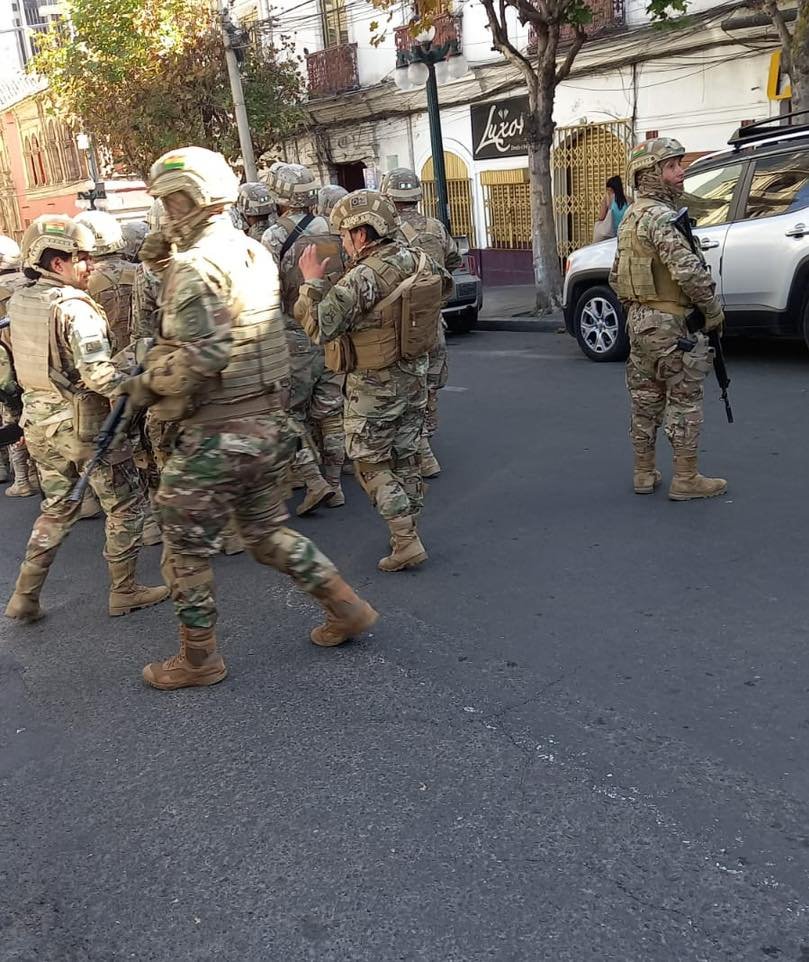 Tanques y efectivos militares encapuchados ingresaron a la Plaza Murillo la tarde de este miércoles, desalojando a civiles y medios de comunicación mientras acordonaban el lugar.