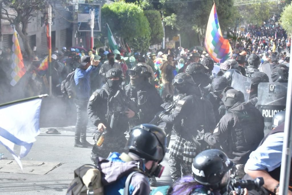 La Policía logró dispersar la marcha evista que intentó ingresar por la fuerza a inmediaciones del Tribunal Supremo Electoral (TSE) en La Paz. Según informó el coronel departamental, los movilizados se tornaron agresivos, intentando derribar otro cordón de seguridad en la zona de Sopocachi.