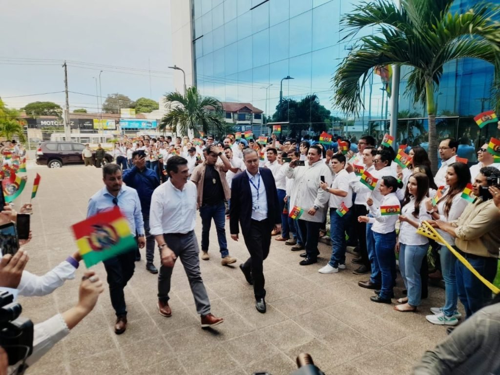 El mandatario electo fue recibido por el personal de Yacimientos Petrolíferos Fiscales Bolivianos, quienes lo saludaron con banderas nacionales en una muestra de respaldo. Durante el recorrido, Paz evaluó las áreas operativas y administrativas para conocer el estado actual de la institución.