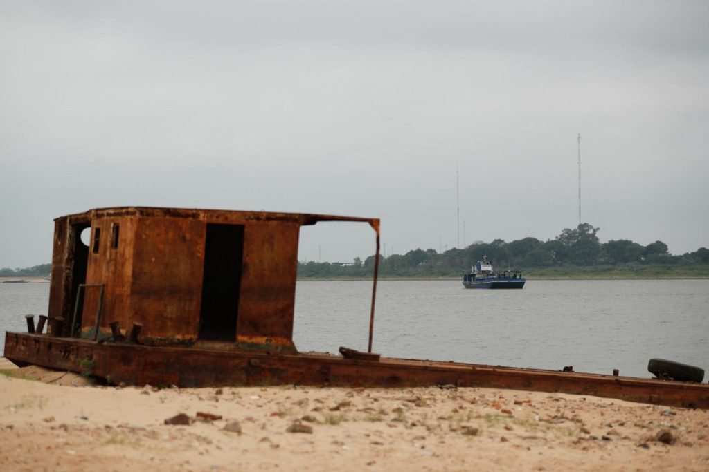 El caudal en Asunción, donde se erige el mayor puerto del país, ha ido decreciendo hasta marcar el viernes 1,02 metros por debajo del cero hidrométrico, un dato alcanzado por primera vez desde que se tiene registros, según la Dirección de Meteorología e Hidrología (DMH). La medición se mantuvo negativa este domingo, con otro récord de -1,06 metros, y este lunes se situó en -1,09 metros.