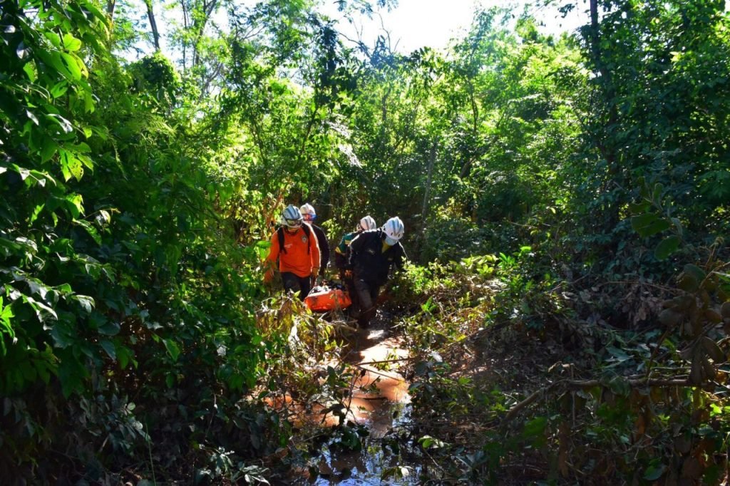 El operativo se desarrolló en una zona de difícil acceso, sin caminos habilitados, lo que obligó a la cuadrilla de rescate a abrir una senda entre matorrales y zonas de mazamorra para llegar hasta el punto exacto donde fue encontrado el cuerpo.