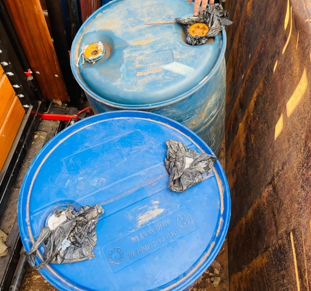 El segundo caso en un operativo el 13 de julio de 2025, en horas de la mañana en la carretera hacia el departamento de Santa Cruz, a la altura de la comunidad Casarabe del Beni, se interceptó una volqueta de color amarillo que transportaba de manera ilícita ocho turriles con combustible (seis con diésel y dos con gasolina) y se aprehendió a una persona.