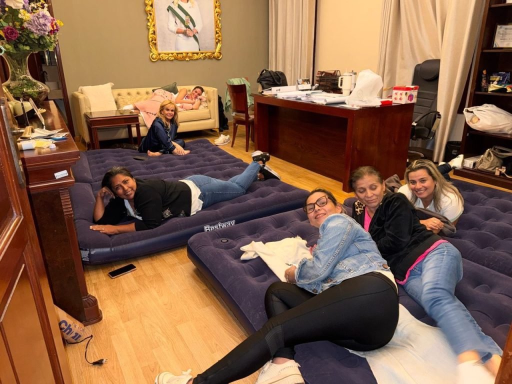 La presidenta del Concejo Municipal de Santa Cruz Silvana Mucarzel durmió en su oficina junto a un grupo de mujeres, a la espera de la sesión convocada para hoy viernes a las 10 de la mañana.