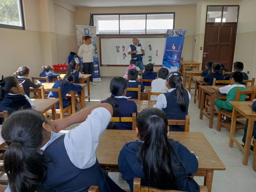 Los estudiantes de entre 8 y 9 años de edad conocieron a los miembros del Escuadrón de Bolivia (Zero, Nita, CT y Tributín), con quienes mediante actividades interactivas conocieron conceptos como la importancia del pago de impuestos nacionales.